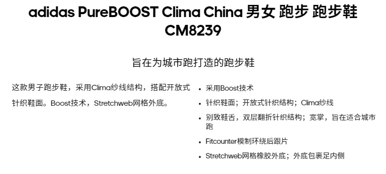 阿迪達斯 官方PureBOOST Clima China 男女 跑步鞋 CM8239