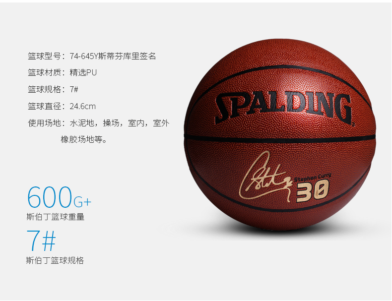 斯伯丁藍球74-645y正品室外耐磨NBA七號庫里軟皮PU籃球