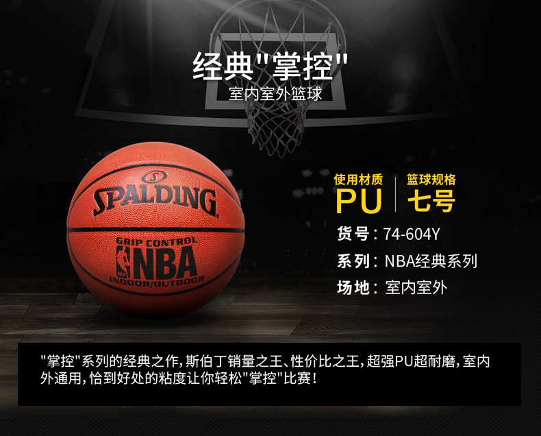 斯伯丁籃球74-418 NBA耐磨防滑7號PU室內(nèi)外耐磨訓(xùn)練比賽用球