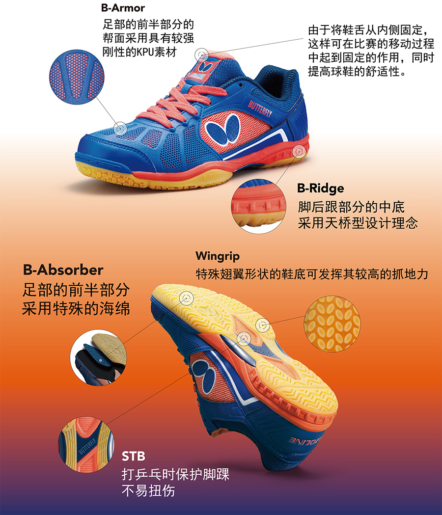 Butterfly蝴蝶LEZOLINE-1專業(yè)乒乓球鞋