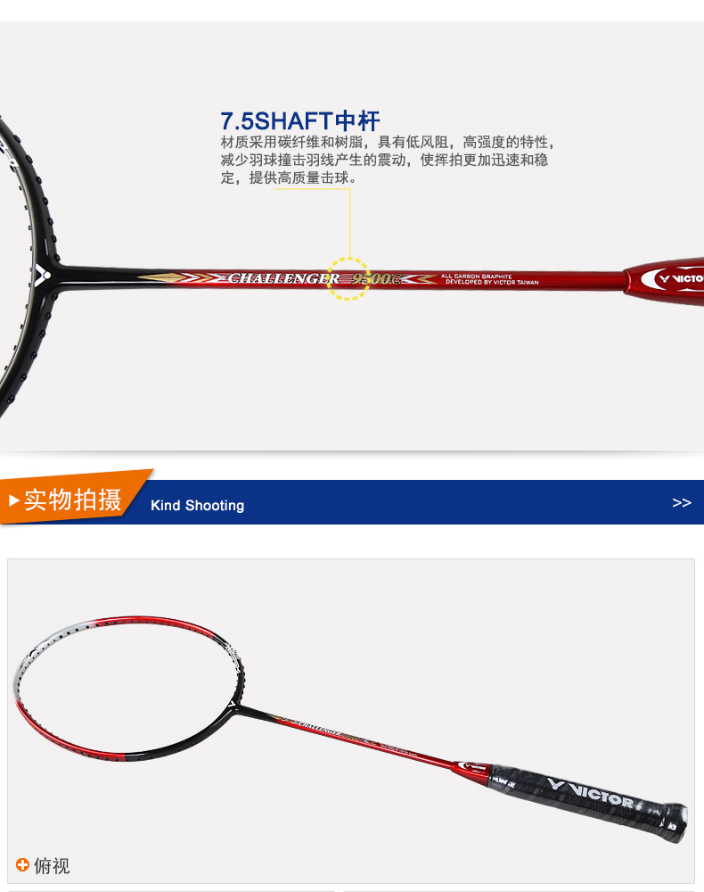 VICTOR威克多羽毛球拍單拍全碳素業(yè)余初級進(jìn)攻挑戰(zhàn)者CHA9500