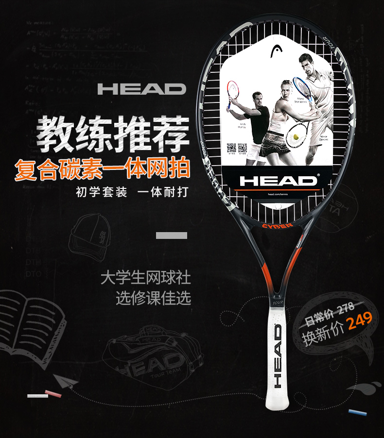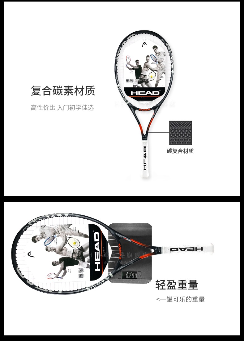 HEAD海德 單人雙人男女士大學(xué)生初學(xué)者碳鋁一體專業(yè)網(wǎng)球拍