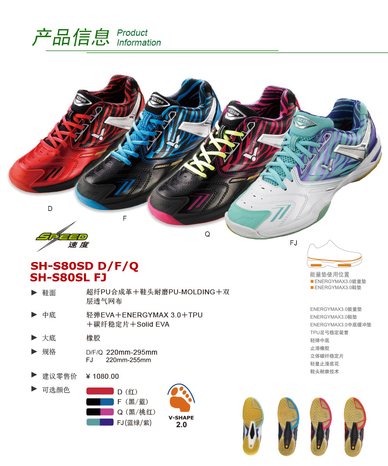 VICTOR威克多羽毛球鞋男女款運動鞋輕彈透氣耐磨速度類S80SD
