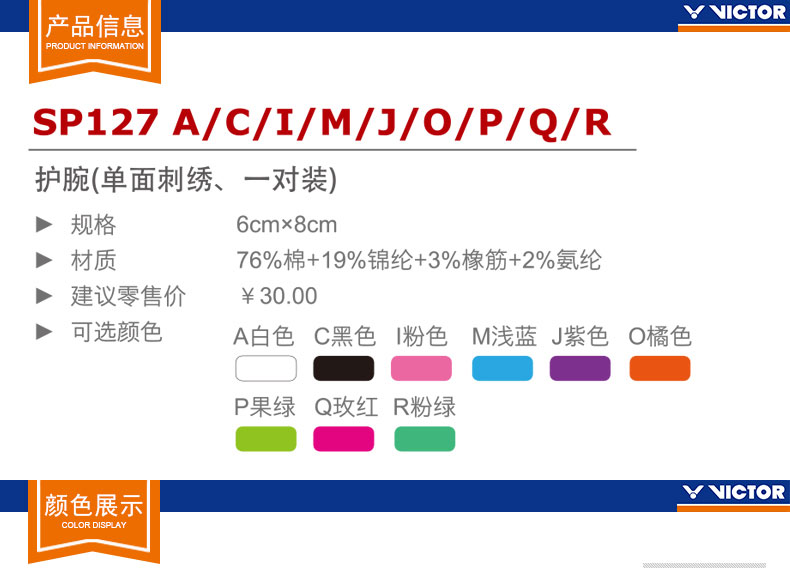 VICTOR威克多羽毛球運(yùn)動(dòng)護(hù)腕棉質(zhì)多色運(yùn)動(dòng)健身訓(xùn)練 SP127