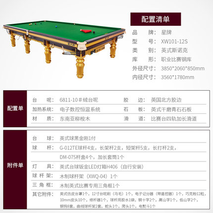 星牌 臺球桌 XW101-12S英式斯諾克世錦賽用臺